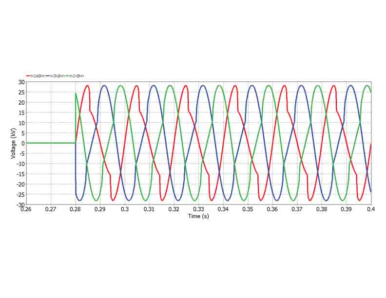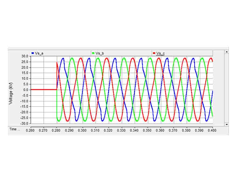 Fig. 1 illustrates the system model designed to analyze the transformer’s dynamic response during energization conditions. At t = 0.28 sec, the transformer is energized through the circuit breaker, triggering an initial magnetizing current surge. The transformer, featuring 20% impedance (%Z), a YNyn0 vector group, and ONAN cooling, is modeled in EMTP (Electromagnetic Transients Program) and PSCAD (Power Systems Computer Aided Design) to replicate transient system behavior, following OEM specifications that detail the transformer’s electrical and magnetic characteristics.